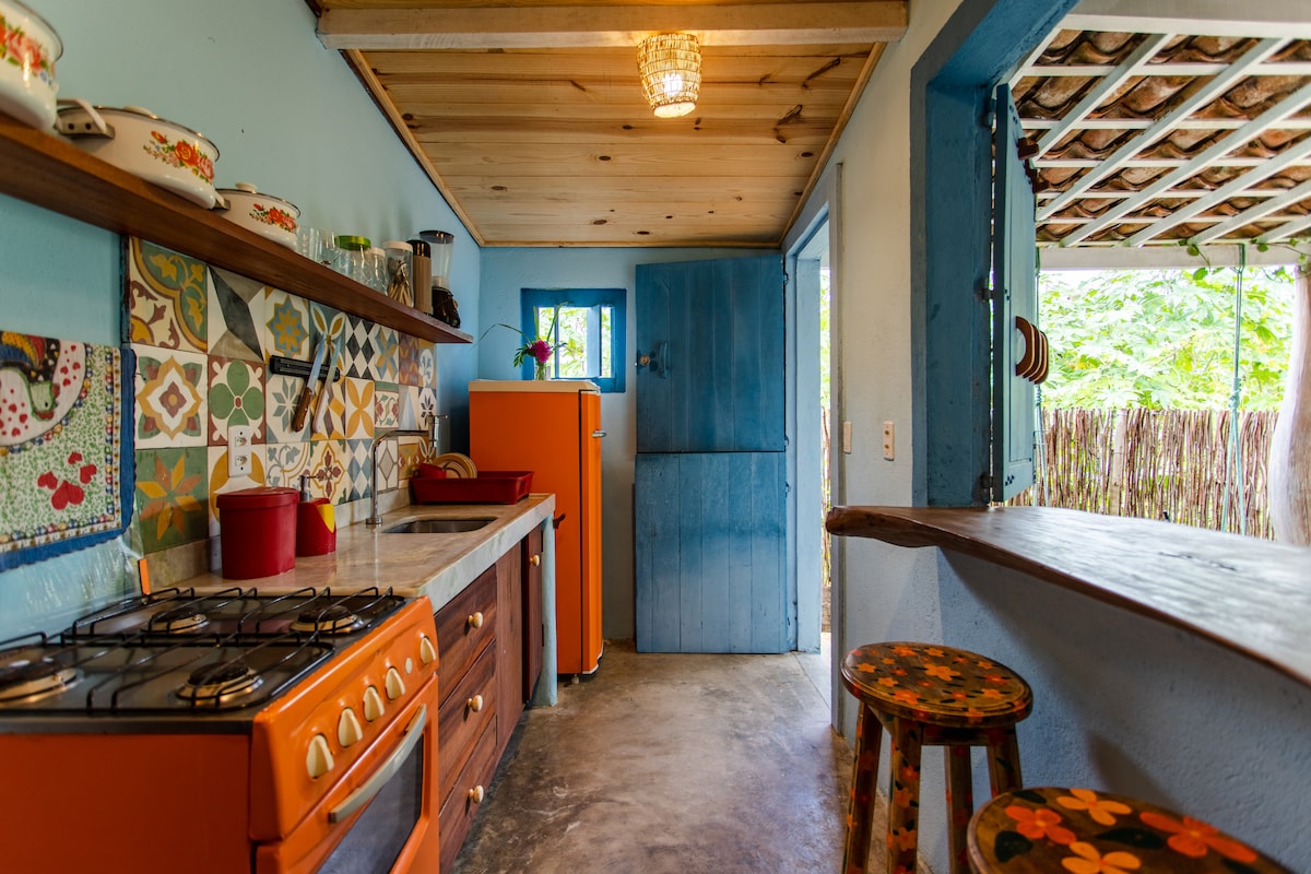 Olvídate de tus preocupaciones en este lugar tranquilo y espacioso. Casa Papagaio es una gran opción para una pareja que busca privacidad y comodidad, así como contacto con la naturaleza. La casa tiene una suite con aire acondicionado y ventilador, cama tamaño queen, amplio baño con ducha caliente, cocina equipada, zona exterior con barbacoa, mesa y sillas, hamacas y ducha al aire libre, con vistas al jardín, así como estacionamiento. ¡Estamos ubicados a unos 350 metros de la playa y cerca de Cabana do Kite!