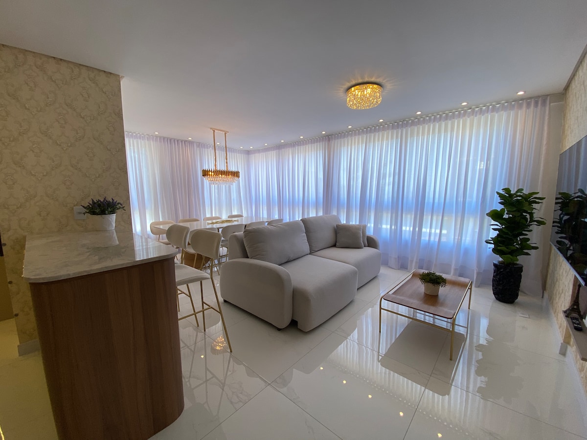 Apartamento de lujo a solo unos pasos de la playa. *** Apartamento con 3 dormitorios, con aire acondicionado split en todos los dormitorios y en la sala de estar*** Apartamento completo con parrilla, garaje, TV de 70 pulgadas en la sala de estar y TV de 60 pulgadas en la suite principal, Internet de 500 mega, split, lavadora, Sky, Netflix, Disney+, HBO+... Ahora también tenemos ropa de cama para que te resulte fácil hospedarte y sillas y sombrilla. ¡Aceptamos mascotas pequeñas!