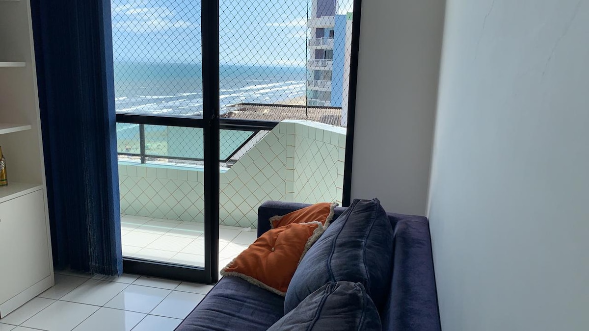 Bem-vindo ao meu apartamento! Ele é de vista e frente para o mar, o que garante uma vista incrível de todos os cômodos.Possui churrasqueira gourmet na varanda. Ar condicionado na suíte e na sala (fotos não atualizada ainda). Além disso, vocês tem direito a área de lazer do prédio. Espaço organizado, decorado e com móveis de alto padrão.Cama queen, smart TV, Wi-fi. Localiza-se na Guilhermina, ao lado da feirinha de doces, a 50m do Carrefour e restaurante.Câmera de segurança no hall de entrada.