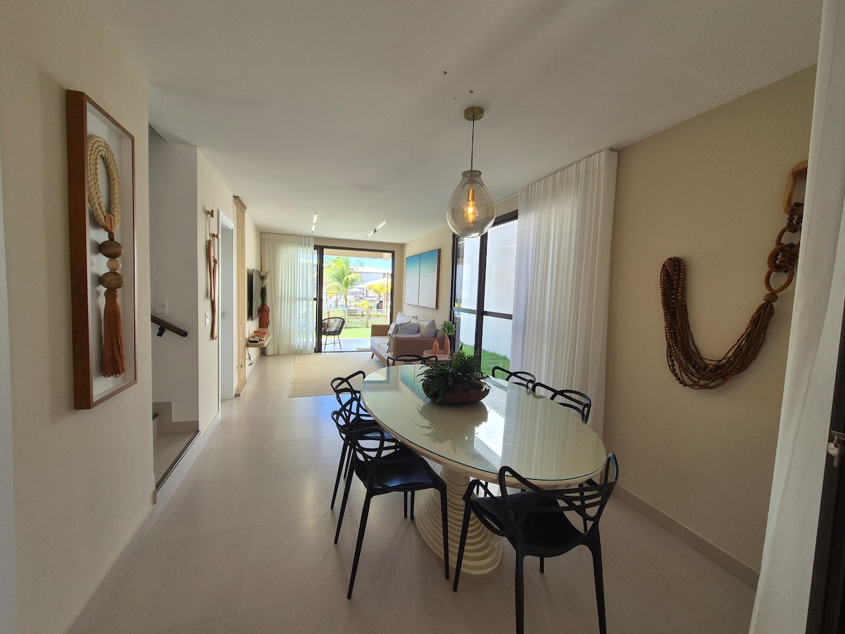 Un pueblo muy TOP, en la arena, decoración náutica, hicimos todo con mucho cuidado para que puedas sentir el placer de una hermosa casa de playa, con toda la infraestructura que un condominio puede ofrecer, realmente te despiertas y duermes con el sonido del mar. Hay armarios empotrados, 02 cajas + una caja con auxiliar, que está abierta del tamaño de una cama tamaño king, ropa de cama y toallas 100% de algodón, aire acondicionado en los tres dormitorios, lavadora, CAFETERA NESPRESSO, una hermosa GUITARRA DISPONIBLE.