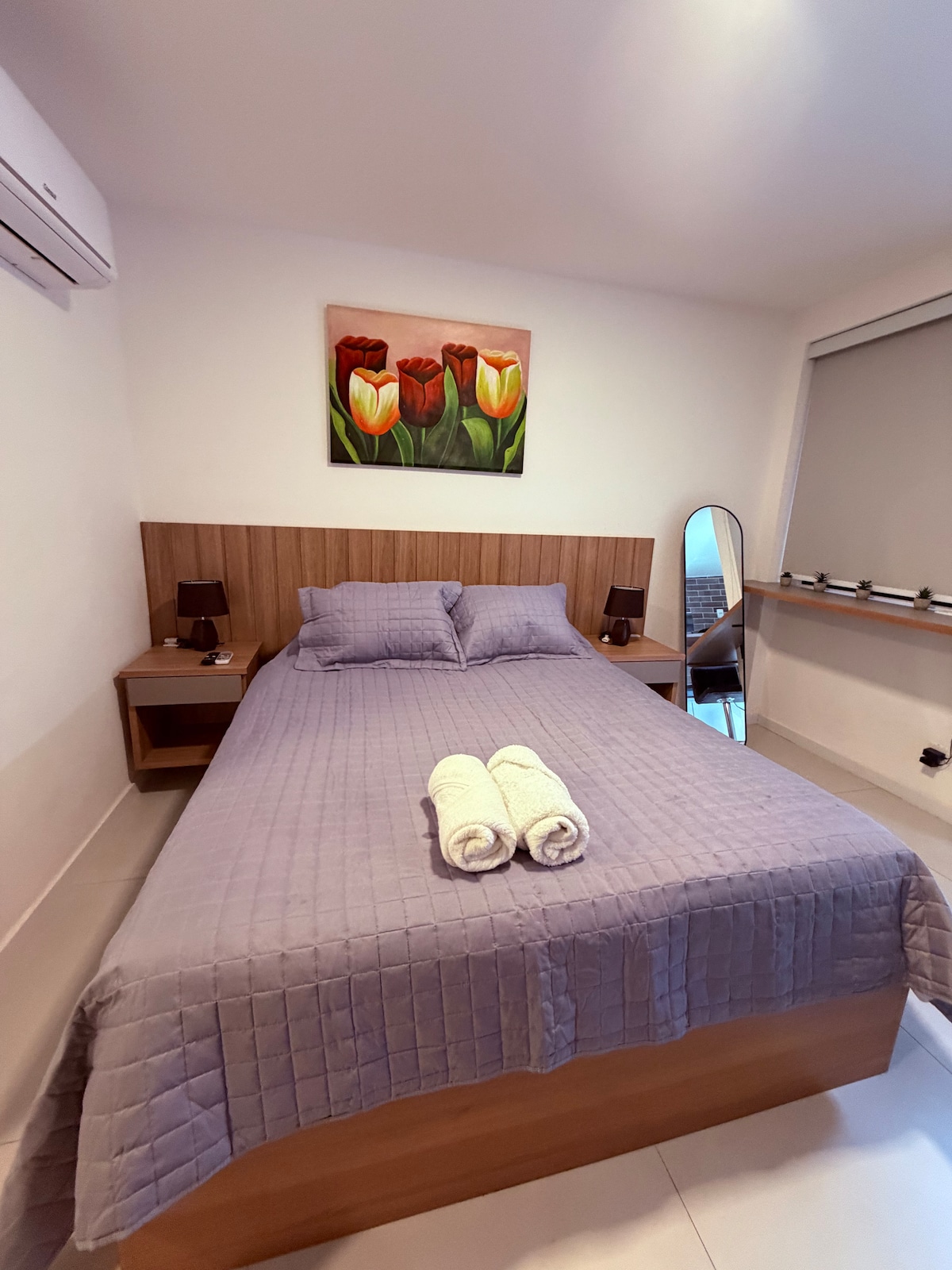 Loft bien equipado, cómodo, con aire acondicionado, con una hermosa vista de Río de Janeiro, a dos minutos de la playa de Icaraí y con toda la estructura comercial como restaurantes, panaderías, mercados y farmacias. Una plaza de aparcamiento con aparcacoches y accesibilidad para sillas de ruedas. El condominio cuenta con piscina, gimnasio y sauna, de uso común. El loft tiene capacidad para una pareja o dos parejas. Huésped adicional: 100,00 R$ (por persona).