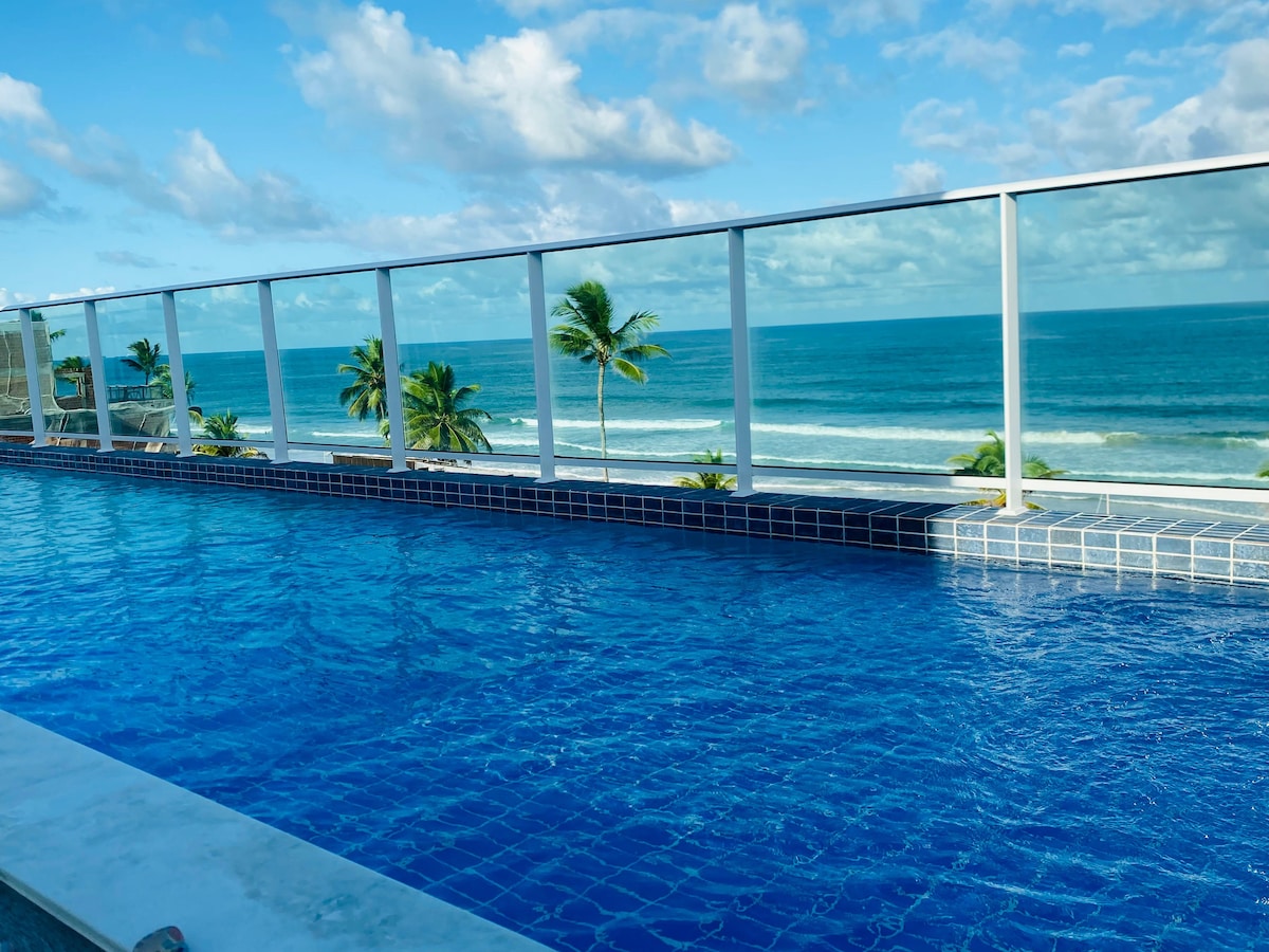 Nosso Flat tem uma das vistas mais espetaculares, um mar maravilhoso de frente, arrecifes de corais cheio de peixinhos compondo uma visão de tirar o fôlego! Um local paradisíaco! Nosso espaço é de frente para o mar, perfeito para família pois o mar é limpo e raso, bebês amam, Os casais apaixonados tem motivos para fortalecer a paixão com tanta beleza! Como se não bastasse tem, piscina perfeita para adultos, crianças, Beach tênis, e um por do sol de tirar o fôlego. Vem, nosso receptivo é show!
