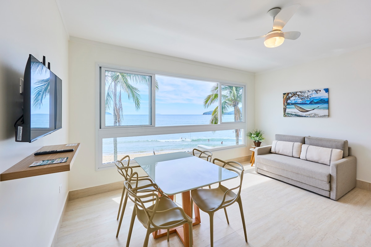 Encantadores estudios independientes en la hermosa playa de Prumirim. Entrada independiente, patio privado, cocina totalmente equipada, cama queen size de alta calidad, cómoda sala de estar. Todo diseñado con calidad, comodidad y estilo. ¡Grandes ventanales panorámicos que te harán sentir entre las copas de los árboles! Este es un lugar mágico para aquellos que buscan una escapada romántica junto al mar conectándose con la naturaleza sin comprometer su comodidad. ¡Todo meticulosamente limpio, desinfectado y seguro!