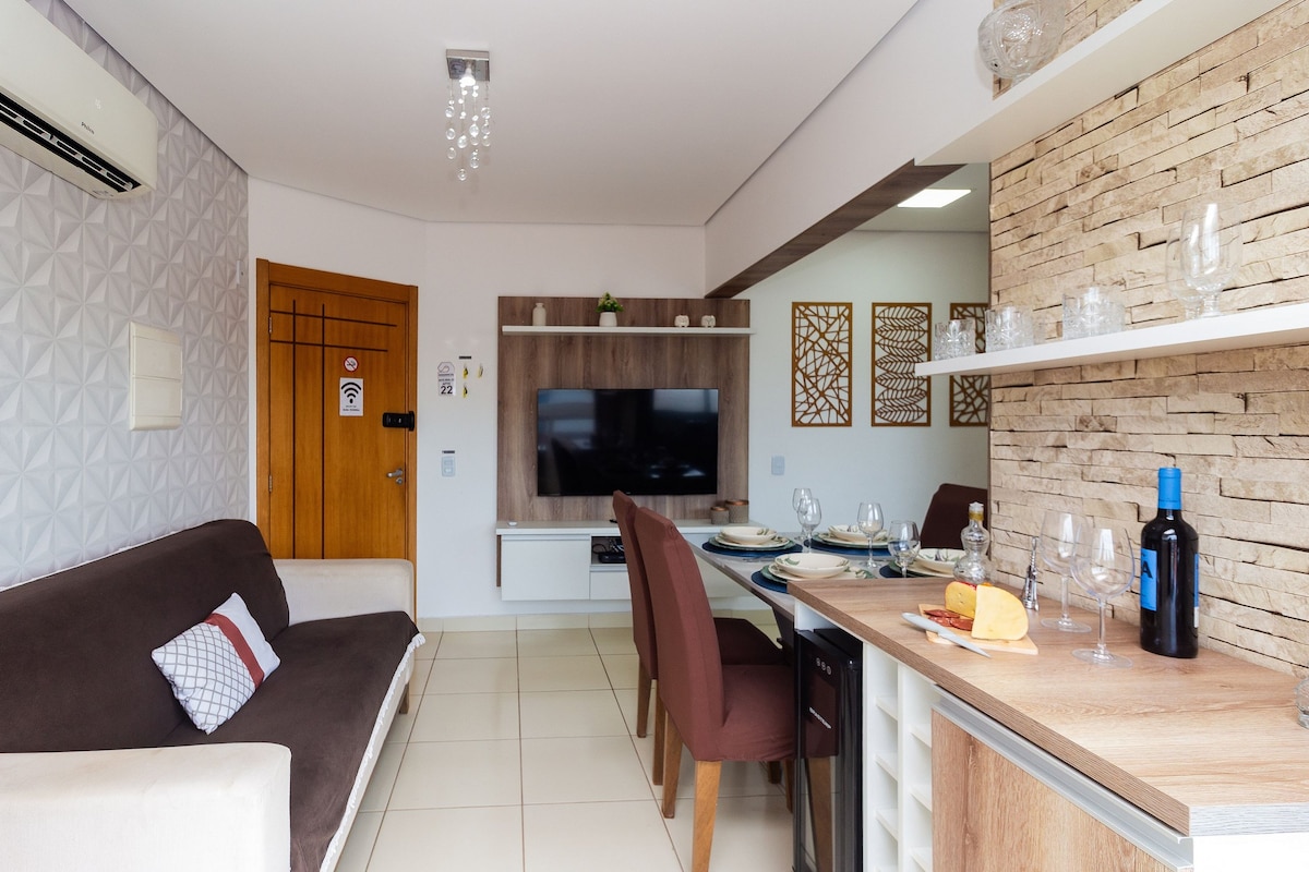 ¿LA LIMPIEZA, LA COMODIDAD Y LA EXCELENTE UBICACIÓN TIENEN SENTIDO PARA USTED? Si es así, bienvenido a uno de los mejores AIRBNB de Praia Grande, diseñado con muy buen gusto, ¡ven a sorprenderte! ¡FRENTE AL MAR! ¡AIRE ACONDICIONADO! El más completo y acogedor de Caiçara, edificio recién entregado, completo en electrodomésticos, smart TV 55 pulgadas wi fi, encimera para home office. Barbacoa en el balcón con hermosas vistas al mar para relajarse, garaje cubierto, pantalla en las ventanas, portero las 24 horas, pensado para una experiencia única.