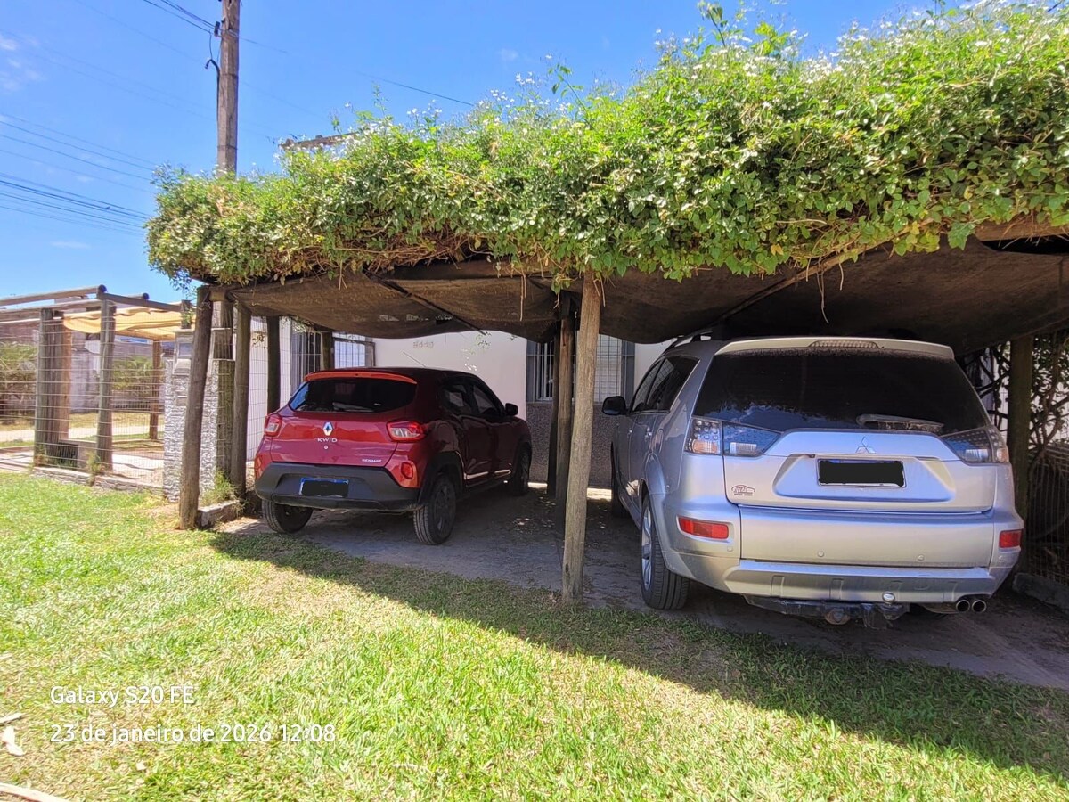 PASSE DIAS TRANQUILOS E ACONCHEGANTES NO CASSINO! Casa tranquila e acolhedora para ATÉ 6 PESSOAS (incluindo crianças de qualquer idade). Recém-reformada, com 3 quartos (cama box e guarda-roupas), sala com TV smart, e área integrada de copa e cozinha com mesa para 6. Banho à gás e calefator garantem conforto no inverno. Taças de vinho e espumante. Pátio com banheiro completo, lavanderia, e garagem coberta com churrasqueira. Próxima à praia, perfeita para todas as estações. *Não fornecemos lenha.