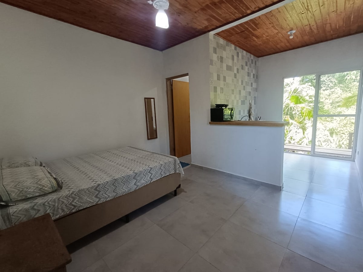 Escápate al Bosque Atlántico y vuelve a conectar con la naturaleza. Nuestra acogedora suite privada para 2 personas combina el encanto rústico con el confort moderno. A solo 5 minutos del centro de Ubatuba y a 7 minutos de la playa Vermelha do Norte, es perfecto para parejas que buscan paz y senderos. El jardín, la piscina y la entrada se comparten con nuestra familia, incluido un simpático golden retriever y nuestra pequeña hija. Una estancia segura, tranquila y acogedora para sentirte como en casa en Ubatuba.