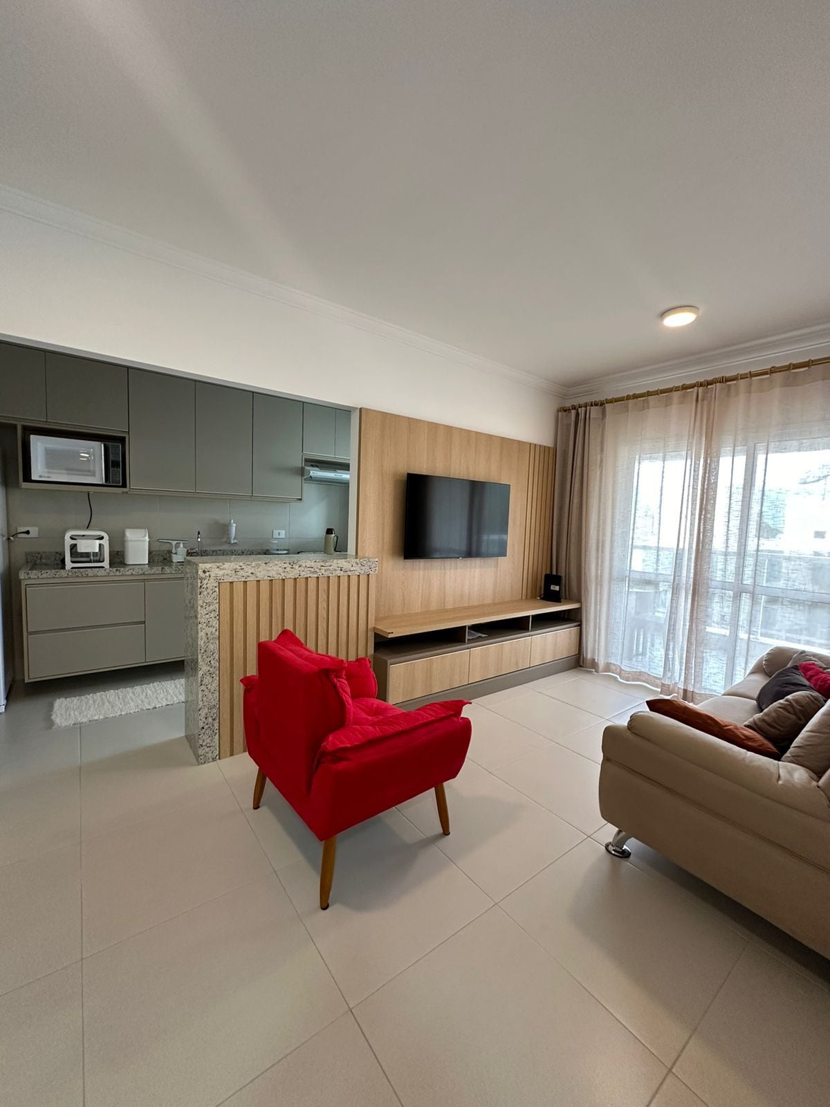 Nuevo estudio con diseño firmado por arquitecto, muy bonito y confortable. Se encuentra a 400 metros de la orilla de la playa de Perequê Açú. Contamos con: TV inteligente, Wi-Fi de fibra óptica, espacio de trabajo, cocina equipada, barbacoa en el balcón y una vista impresionante de la Mata Atlántica. En el edificio tenemos piscina, horno de pizza, ducha y garaje con puerta electrónica. Está muy bien ubicado, cerca del Centro y de la Rua Turística, además de la Rodovia.