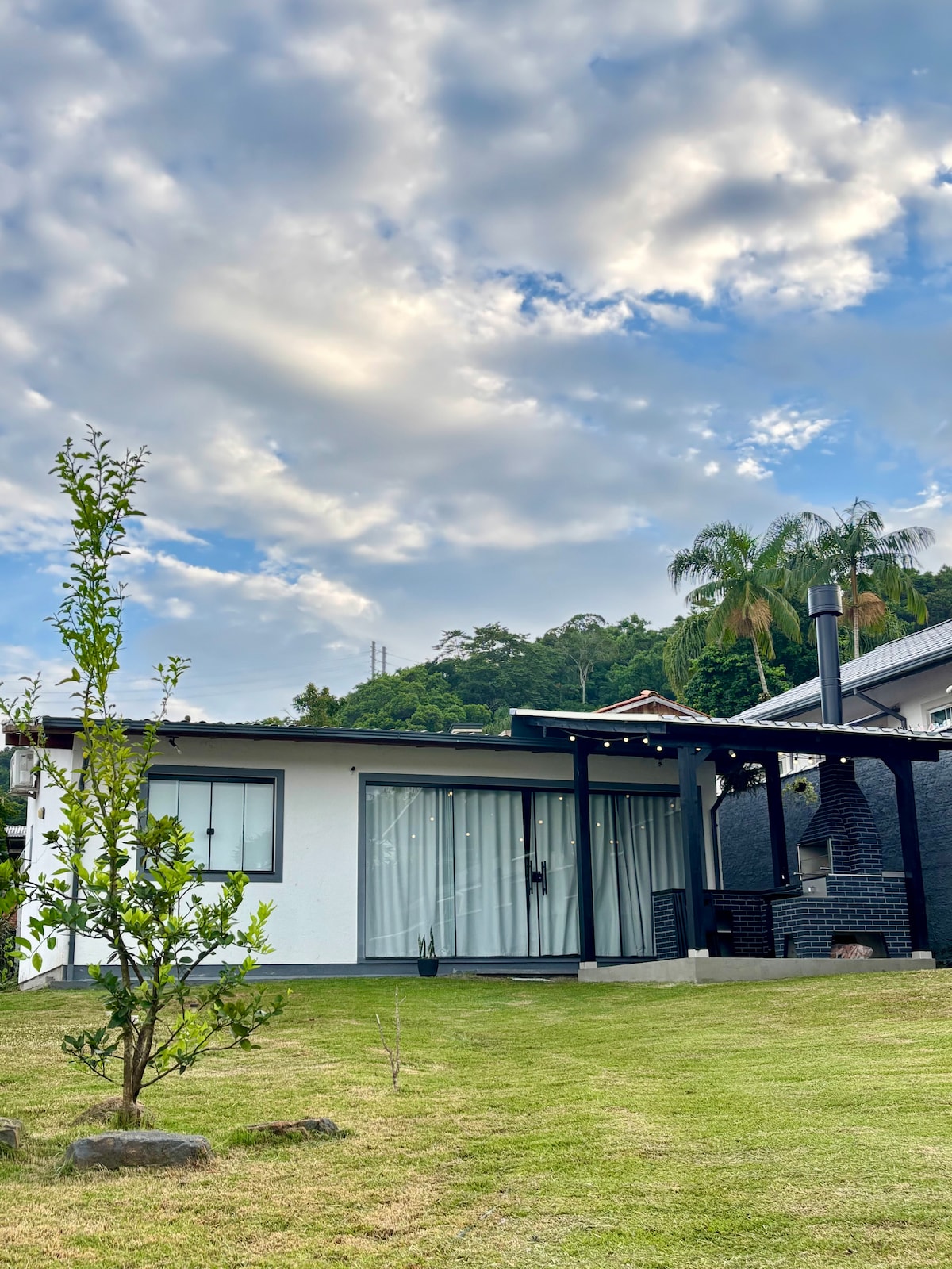 Somos la experiencia @invernadero Una escapada exclusiva en medio de la naturaleza, a solo 3 km de Jurerê International. Nuestro chalet, perfecto para parejas, ofrece la comodidad esencial para una experiencia inolvidable de conexión con la naturaleza. Relájate en el balcón bordeado de árboles, disfruta del sauna seco, el jacuzzi al aire libre y calienta junto a la chimenea de leña. La propiedad también tiene una unidad residencial y otra cabaña, donde un espacio terapéutico sirve a los huéspedes y visitantes.