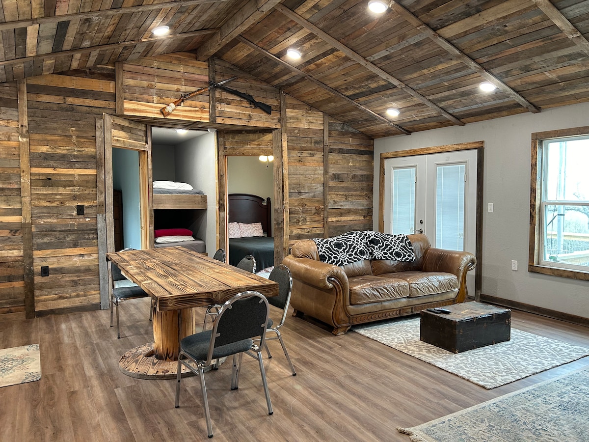 ¡Escapada de cazadores recién remodelada lejos de casa! El albergue tiene 2000 pies cuadrados con dos dormitorios. ¡El primer dormitorio tiene tres literas con una cama de matrimonio en la parte inferior y una individual en la parte superior! El segundo dormitorio tiene dos camas completas. Sala de estar ubicada arriba con sofás, un sillón reclinable y TV. La cocina pequeña tiene horno tostador, microondas y una parrilla ubicada en el exterior. ¡Ubicado en el centro de la ciudad, cerca de restaurantes y bares! Estamos deseando que visites Overnight At Icehouse. La unidad 2 es una unidad contigua, alquila ambas para alojar a 12 huéspedes.