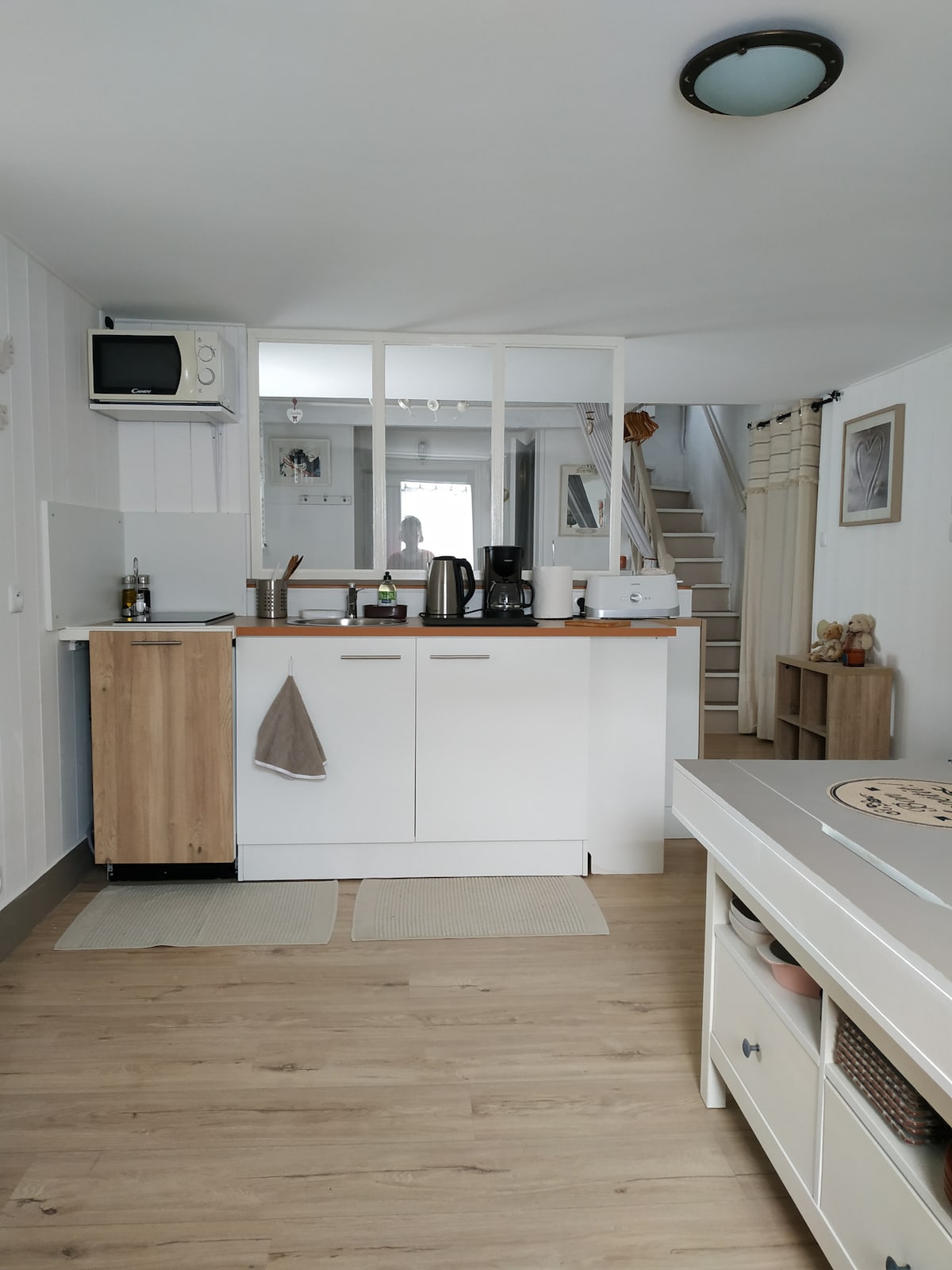 Bonito apartamento de 30 m ² frente a la colegiata de Guérande, en ❤️ las murallas Alojamiento situado en el 3º piso (sin ascensor) de uno de los edificios más antiguos de las murallas: "Le Vieux logis". Entrada privada en escaleras, cocina abierta (refrigerador, lavavajillas, horno, microondas, placas vitrocerámicas, cafetera de filtro y cafetera Tassimo) en la sala de estar. SdB con bañera e inodoro. 1 dormitorio con cama de 160x200, ropa de cama Emma Colchón y ropero. Cama paraguas o calentador a disposición