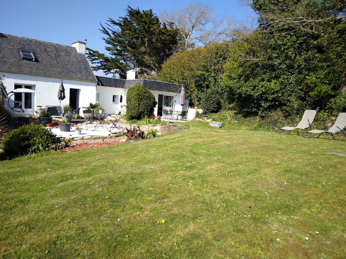 Casa individual con 4 dormitorios, para 1 a 8 personas. Gran situación en un pequeño pueblo tranquilo, en medio de la naturaleza, con una vista increíble al mar. Muy bonito jardín privado. Aparcamiento privado junto a la casa. Al final del jardín, tienes un camino para ir a la playa o hacer senderismo a lo largo del mar. La Pointe du Raz está a 10 minutos en auto. Si te gusta el surf, es un gran lugar. La ropa de cama no está incluida, pero puede estarlo si lo deseas, por 20 € más por persona.