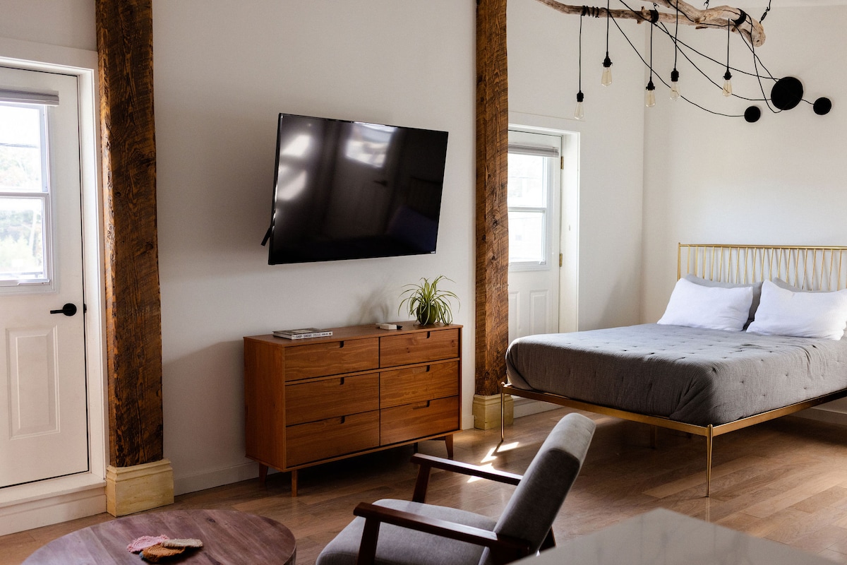 ¡Este elegante estudio está cerca de todos los destinos imprescindibles de PEC! A pocos pasos de los mejores restaurantes y tiendas de Wellington, a pocos pasos de la playa o del sendero Millennium. Esta hermosa suite está equipada con una cocina completa y lavandería, una amplia terraza privada con vistas a Main Street y está justo encima del Creekside Cafe. Nuestro pequeño hotel boutique tiene dos suites para huéspedes, así que pregunta si necesitas más espacio. Licencia STA # ST-2021-0229