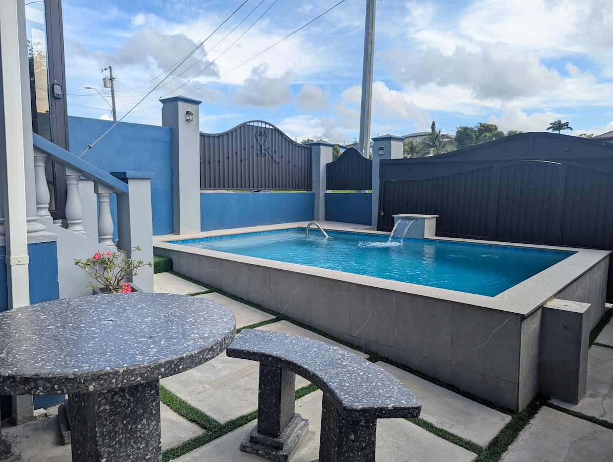 Discover the charm of Solris Estates – your perfect getaway. Enjoy family poolside fun, outdoor picnics, and movie nights. Unwind with a relaxing day by the pool, where you can bbq or savor the flavors of curry in our outdoor kitchen. Sleeps 12. Centrally located, you can easily access supermarkets, restaurants, public transport, businesses & gov't offices (5-10 min walk). Key towns (apprx drive time)- San Fernando (20 mins), Point Fortin (45 mins), Mayaro Beach (90 mins), Moruga (45 mins).