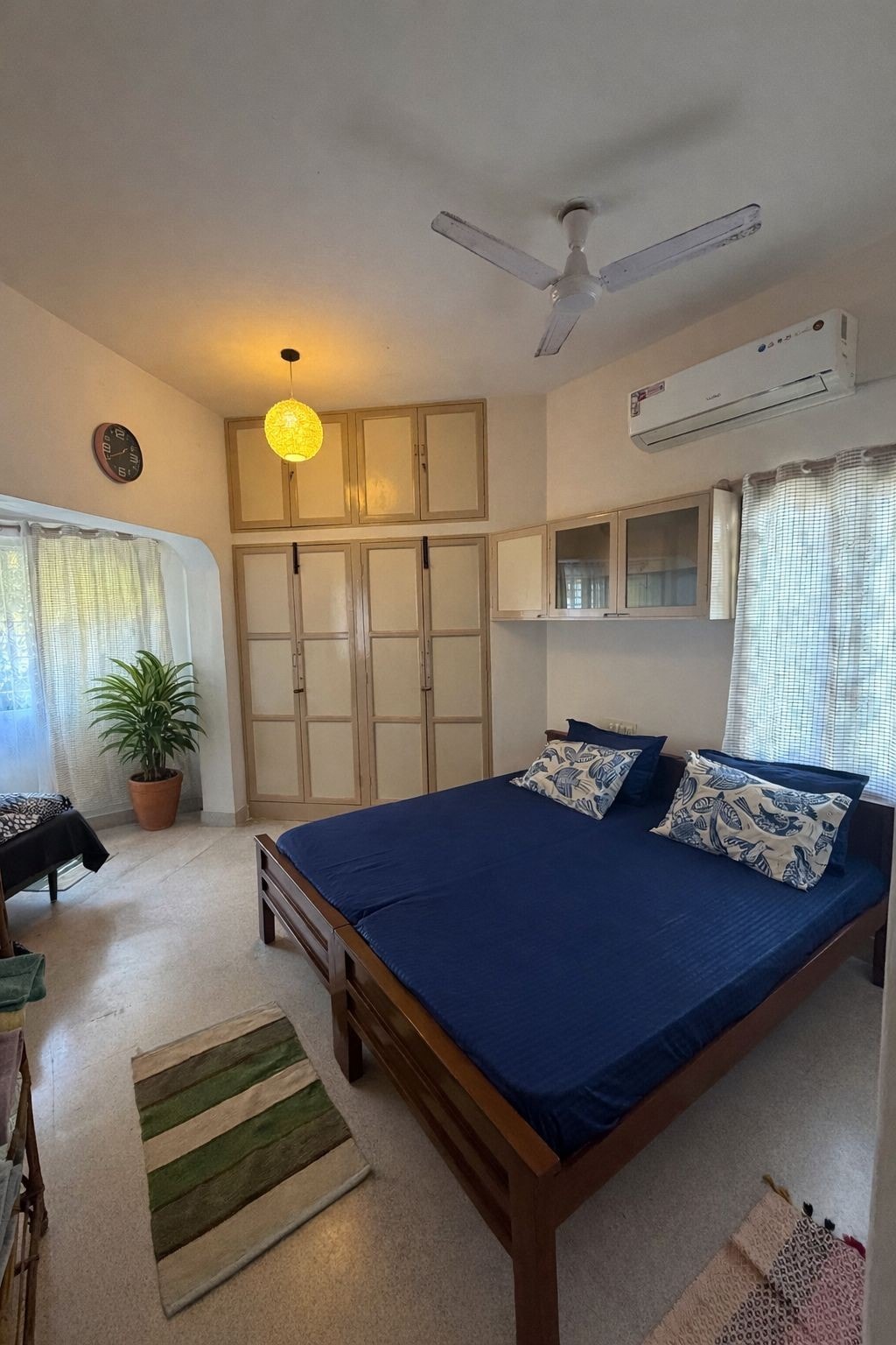 Este apartamento de 1 dormitorio en GF con un vestíbulo, cocina funcional y baño adjunto es un espacio totalmente privado sin compartir ninguna área. Está a poca distancia de la playa Promenade, Rock Beach, Ashram, White Town, mercado y buenos cafés. El lugar está cerca de la ciudad blanca y aún cerca de la naturaleza y un entorno muy tranquilo. Todas las ventanas dan a un enorme terreno verde. Tiene cocina totalmente funcional con utensilios, congelador, aire acondicionado, hervidor, TV, wifi de alta velocidad. Necesitamos pruebas de identificación de todos los huéspedes.