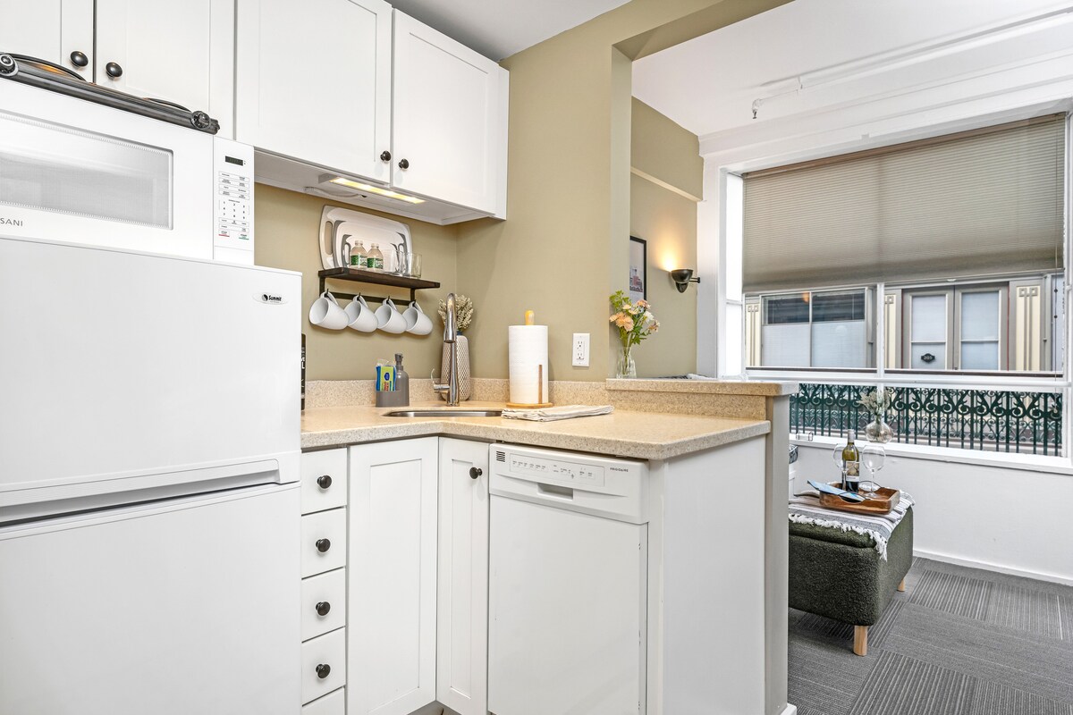 Entra en este impresionante loft industrial y siente su encanto desplegarse. Te encuentras con una sala de estar de concepto abierto, paredes de ladrillo a la vista, ricos pisos de madera, techos abovedados y ventanas de gran tamaño que establecen un tono de encanto industrial. El espacio fluye sin esfuerzo, ofreciendo una cama tamaño queen, área de estar y una moderna mesa de comedor. La cocina hace que este espacio sea perfecto para un máximo de dos huéspedes. A poca distancia a pie de College Hill, a 1 milla del tren y a 15 minutos del aeropuerto, ¡tu estancia perfecta en Providence!