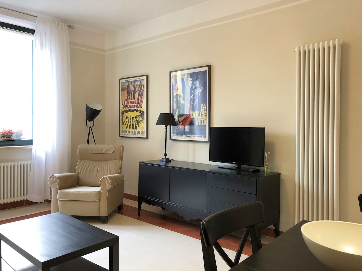 Situado en el corazón de Ascoli Piceno, a solo 5 minutos a pie de Piazza del Popolo y Piazza Arringo, este apartamento está situado en el primer piso de un edificio elegante e histórico frente a un antiguo puente romano. Está construido con materiales de alta calidad con un diseño elegante y muebles de alta especificación. El apartamento ha sido reformado recientemente y cuenta con salón, dormitorio principal con cama de matrimonio, cocina con todos los electrodomésticos necesarios y baño.