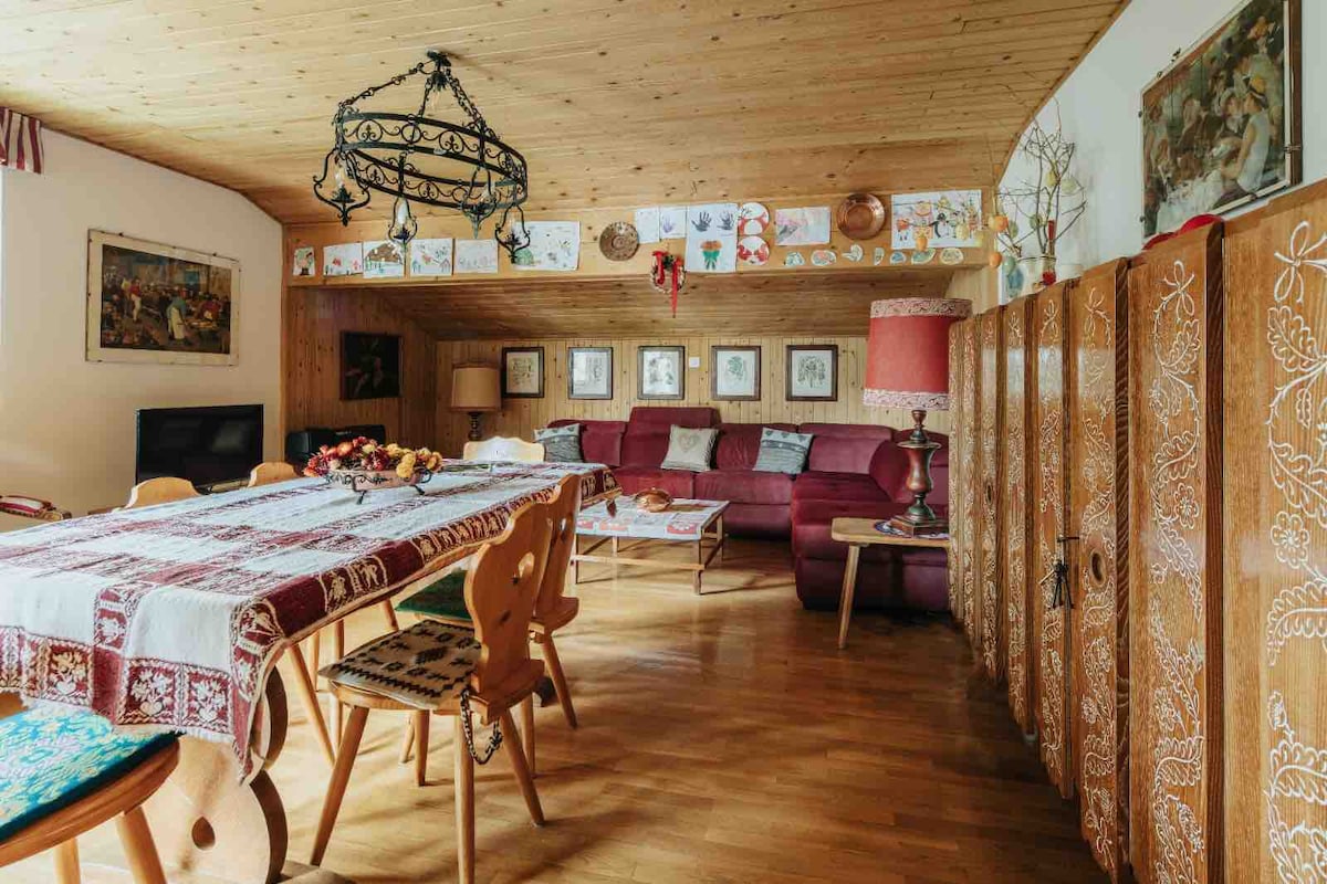 Our house is warm and welcoming, smells of wood, located in the heart of the city. Comfortable apartment along the pedestrian area of Cortina, on the first floor of a typical Ampezzo house from the 1800s, easy to have everything at your fingertips. It consists of a large entrance hall, living room, kitchen and dining area, a double bedroom, a twin bedroom, bathroom with tub/shower. Equipped with dishwasher, washing machine, dryer, TV, Wi-Fi, and all the necessary accessories.