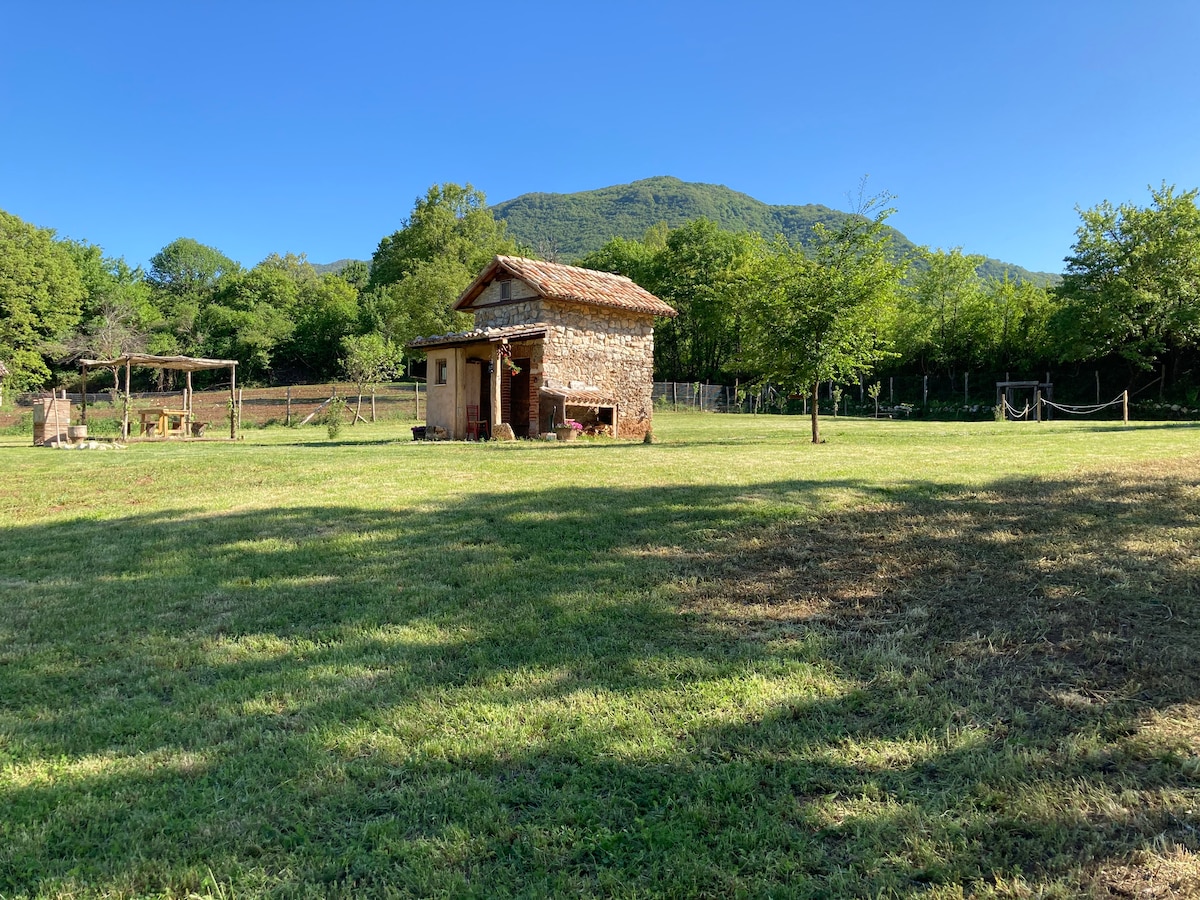 Inmerso en la naturaleza de las montañas Simbruini, puedes redescubrir un entorno antiguo y natural inspirado en principios del siglo XX. No encontrarás las comodidades de una habitación de hotel, sino la experiencia única de pasar un fin de semana encontrando las antiguas costumbres de la cultura rural. Iluminación con velas, calefacción de cocina y agua caliente con estufa de leña, agua de pozo con bomba manual antigua. No encontrarás wifi, sino una conexión entre tú y la naturaleza. 2 adultos y 1 niño