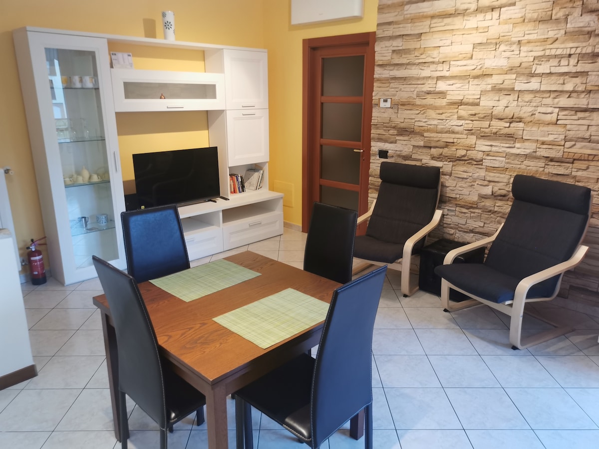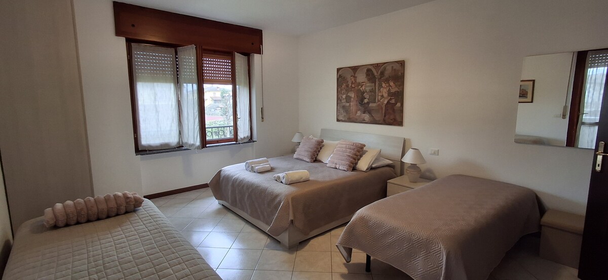 En un entorno majestuoso y tranquilo, a solo unos pasos de tiendas, bares, restaurantes y farmacias, y a solo 300 metros de la estación de tren y la terminal de autobuses. El apartamento, totalmente amueblado (colchón súper cómodo de 26 cm de altura), equipado y climatizado, está ubicado en la planta baja, tiene un jardín privado. Hay estacionamiento público disponible cerca,la presencia de una persona no revelada al momento de la reservación tendrá un costo adicional. NO HAY WIFI!!!!
