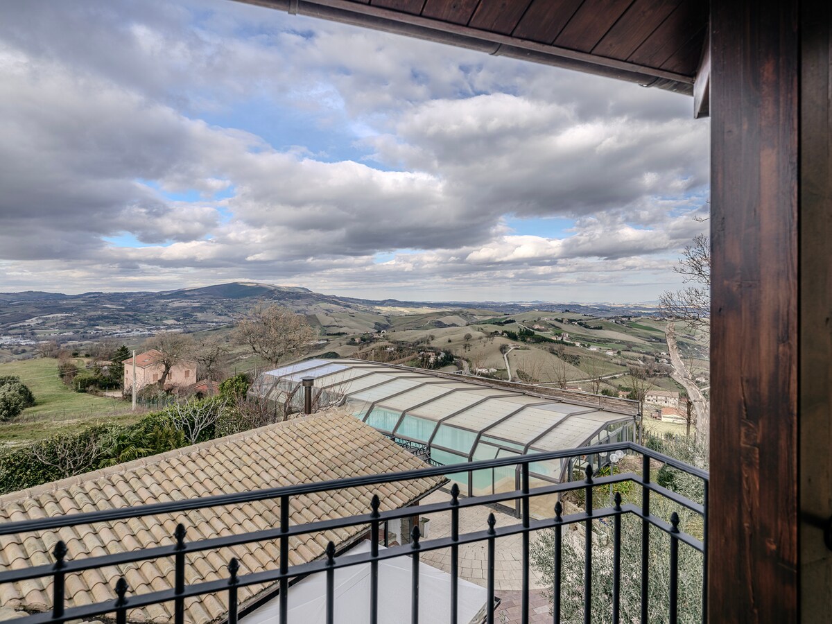 A los pies del monte San Vicino, en una espléndida colina a 420 metros sobre el nivel del mar, en plena tranquilidad y de fácil acceso, se puede disfrutar de una espléndida vista de 360 grados, desde los montes Sibilinos hasta la garganta de la Rossa. Fácilmente accesible en 15 minutos desde Fabriano, en 20 minutos desde las espléndidas cuevas de Frasassi, en 30 minutos desde Gubbio y en 60 minutos desde Senigallia o la Bahía del Conero, en 20 minutos desde la ciudad ducal de Camerino.