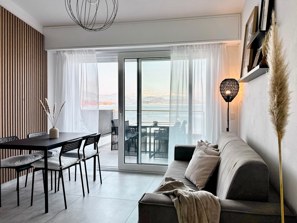 La sala de estar del apartamento es muy luminosa y a través de las grandes ventanas se puede disfrutar de una amplia y hermosa vista del lago Mayor. El apartamento está equipado con todas las comodidades y electrodomésticos, como aire acondicionado, calefacción por suelo radiante, TV inteligente, Internet, hervidor de agua, horno, etc. La proximidad de la autopista hace de esta zona un centro perfecto para desplazarse por una zona muy rica. No solo el lago, sino que en poco más de una hora puedes estar en Milán, Turín y el aeropuerto de Malpensa