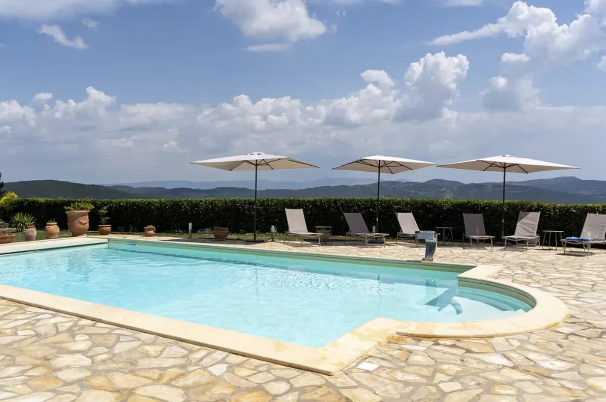 Lo más importante es las vistas, Un mirador del siglo XII que se originó dentro de una reserva de caza medicea, nos sentamos rodeados de viñedos y olivos. Hemos convertido este espacio en una mezcla de muebles de diseño y accesorios clásicos de la Toscana. Todo está personalizado para mayor comodidad. Nos mudamos aquí en 2006 y comenzamos desde cero con un ojo hacia un diseño de planta semi abierta donde cada ángulo, cada puerta, cada ventana está destinada a inspirar y sacar a relucir tu creatividad.
