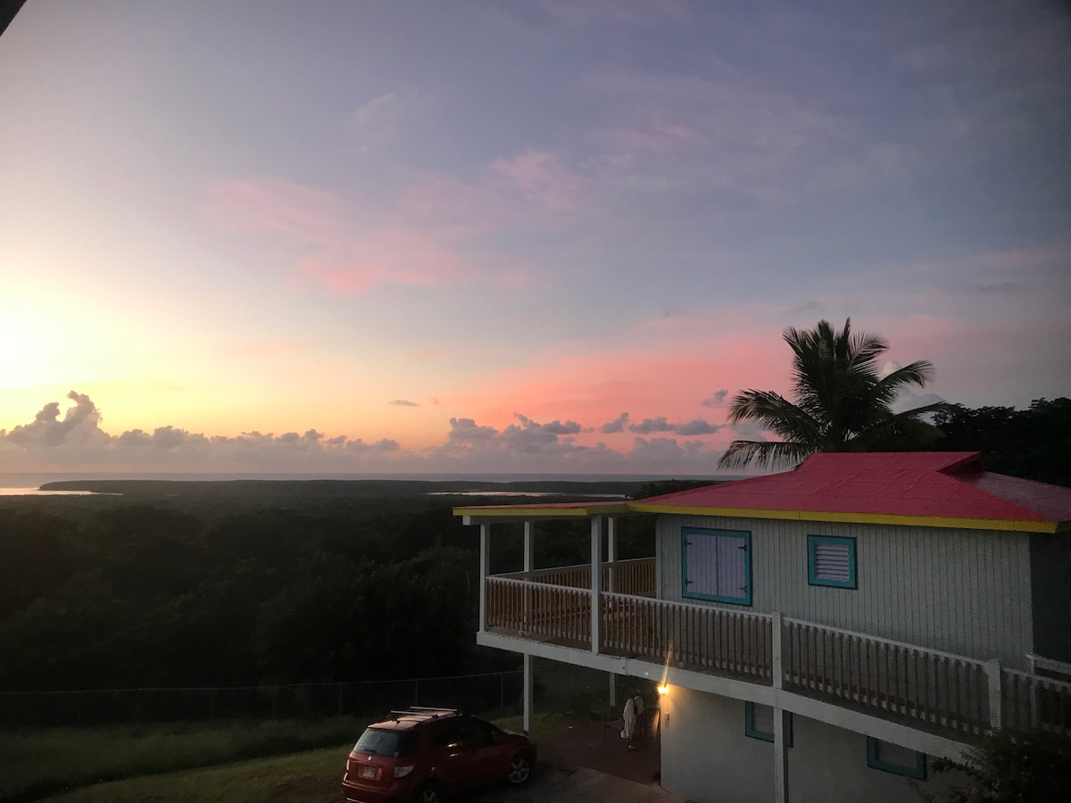 Esta es una casa de dos dormitorios y un baño con impresionantes vistas a la isla de Culebra. Está equipado con una cocina completa. La casa está equipada con todo lo que podrías necesitar para tener una experiencia cómoda y tranquila en Vieques. Ambas habitaciones tienen aire acondicionado, ventiladores de techo y TV inteligente. Cerca de todas las hermosas playas de la isla, como a 15 minutos en auto. La casa está en el lado norte de la isla, a 5 minutos en auto del muelle del ferry. WIFI. Estacionamiento.
