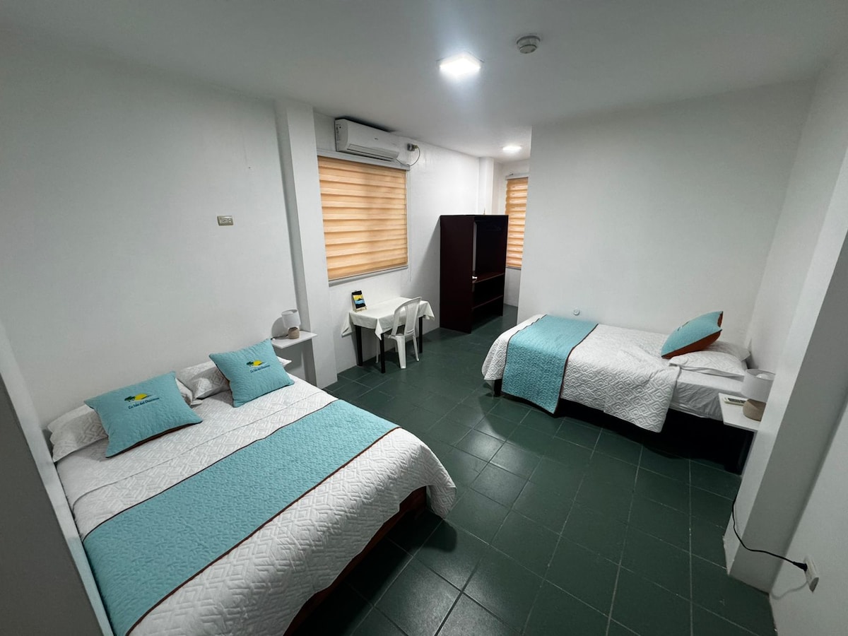 Disfruta de una estancia cómoda y relajada en nuestra habitación doble con cama individual, perfecta para dos personas. La habitación cuenta con aire acondicionado para mantener un ambiente agradable y agua caliente para un baño refrescante. Ubicada en el corazón de la ciudad, nuestra habitación te ofrece la mejor ubicación para explorar y disfrutar de todo lo que la zona tiene para ofrecer. ¡Descansa y relájate en un entorno acogedor y tranquilo!