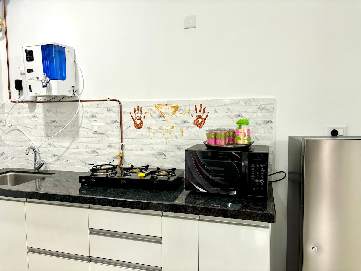 Nest (Suite 1BHK AC) Piso 32 espléndida vista de la ciudad de Pune. #Área de estar: Aire acondicionado Televisor inteligente 4KHD de 56 pulgadas 🎶 Experiencia musical con Alexa ECO Libros, tarjetas y Ludo Sofá cama tamaño queen Mesa de comedor/trabajo con sillas Conexión a Internet de banda ancha. Balcón #Cocina pequeña: Horno microondas Placa de inducción Tetera eléctrica 🔥 Tostadora Prensa francesa Artículos de cocina Vajilla Tazas de café Complementarios #Habitación Habitación Aire acondicionado Cama tamaño queen con mesitas de noche Espejo de vestir Guardarropa Balcón