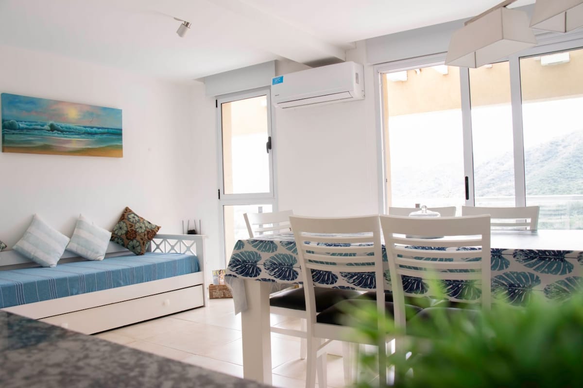 El departamento de un dormitorio es nuevo y está en pleno centro de la ciudad de La Falda, y a la vez ofrece un entorno tranquilo que permite disfrutar de una espectacular vista de las sierras. A pocos pasos, encontrarás una variedad de negocios, bares, restaurantes, supermercados, cajeros automáticos y puntos de interés turísticos. Nuestros huéspedes son nuestra prioridad, por lo que todo el equipamiento del departamento es completo y de primera calidad, para que tu estadía sea excepcional.