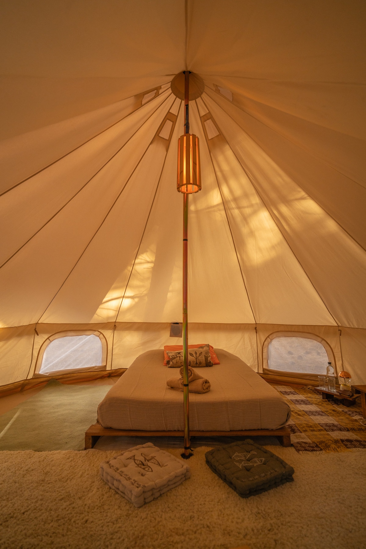 Glamping en bosque de pinos con desayuno épico incluido. Carpa Tipi (Bell Tent) de 5 m de diámetro con cama queen, electricidad, luz cálida y detalles únicos de Wobibi. Ideal para parejas, familias, grupos pequeños o viajeros solos. Un refugio íntimo y artístico a 10 min en auto de Playa Grande, Laguna Negra y Parque Santa Teresa. Naturaleza, comodidad y una experiencia única en Wobibi. Es un espacio creado para descansar profundo y disfrutar de la magia simple de la vida.