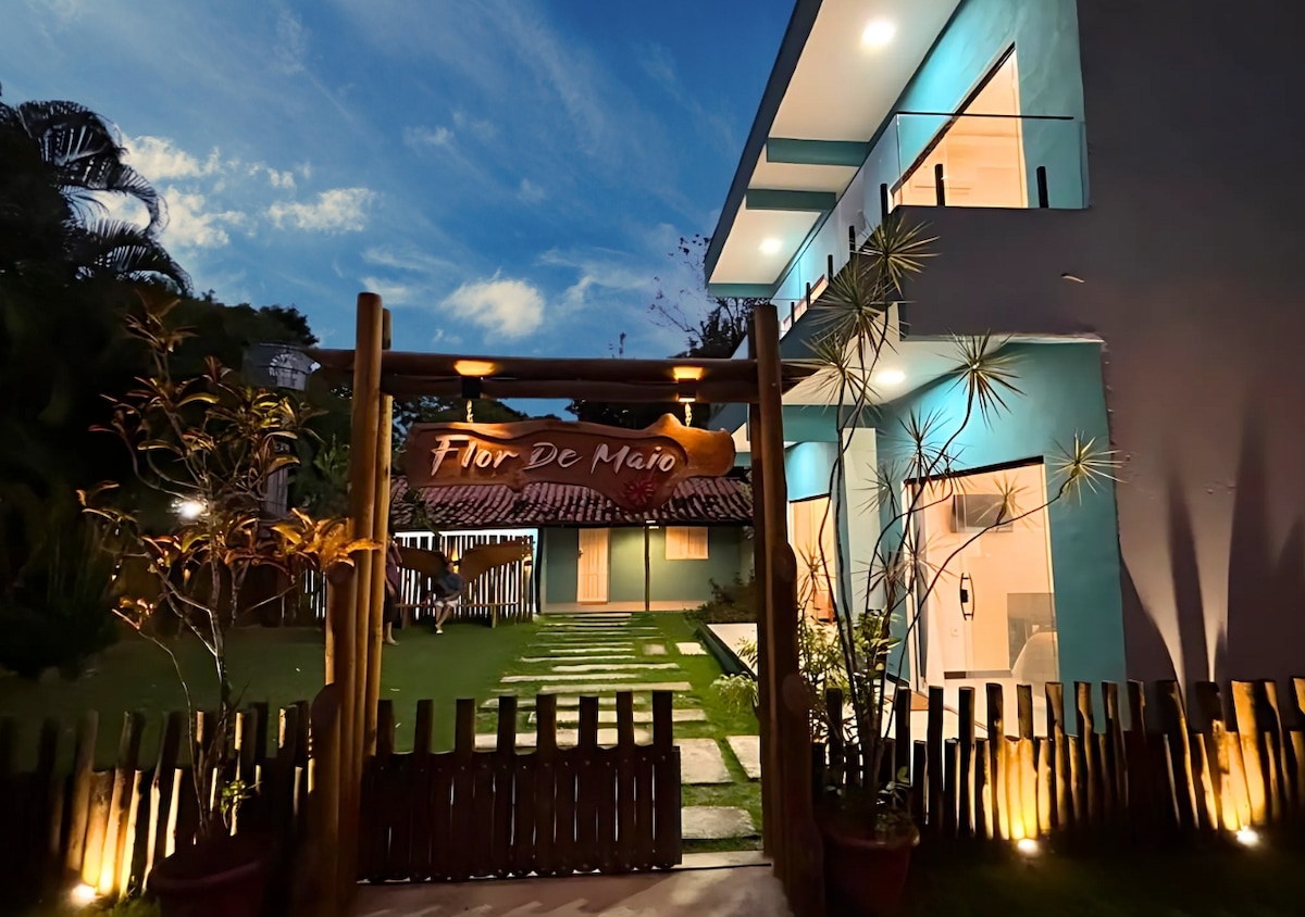 Villa Mia Arraial ofrece alojamiento en un encantador chalet de 36m², en un espacio rodeado de vegetación, con cómodas habitaciones para días de ocio, relajación y descanso. ¡Piscina, zona gourmet y jardín con rincones agradables para ofrecer momentos especiales a los huéspedes! ¡Una invitación a disfrutar de los placeres que este pedacito de paraíso en Bahía, en el famoso pueblo de Arraial d'Ajuda tiene de mejor! Los chalets están ubicados en un terreno de 1000 m², donde también se encuentra la residencia de la anfitriona.