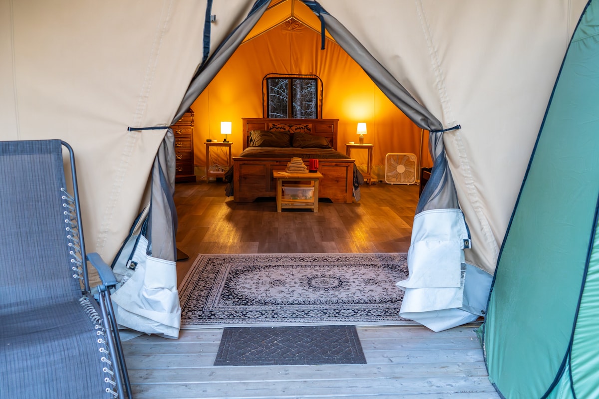 Escape to our unique retreat, where nature and comfort meet in a tranquil, off-grid setting. This "powerless" getaway promises an unforgettable experience. Sleep in the spacious, solar-lit tent featuring a cozy Queen bed with soft linens, a duvet, and fluffy pillows. Spend your day outdoors, evenings by the outdoor firepit under a starry sky, BBQ’d dinners & breathtaking views of the wilderness. If you’re passionate about camping and the outdoors, this property is your perfect sanctuary!