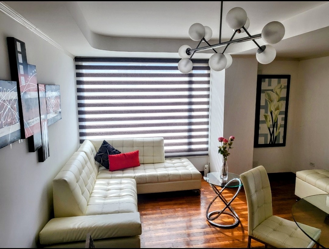 Suite by La Carolina Park, Pool & Parking Luxury suite facing La Carolina Park in one of Quito’s most exclusive areas. Enjoy stunning skyline views, modern décor, and a bright, elegant space designed for comfort. The building offers a heated pool, gym, sauna, and 24/7 security. Free parking included. Steps from top restaurants, shopping malls, and the metro. Ideal for guests seeking style, comfort, and a premium location.