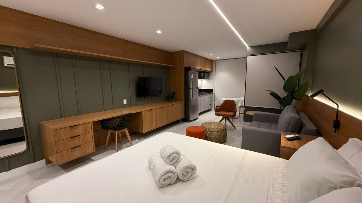 Loft nuevo para 3 en Icaraí con piscina, sauna y gimnasio