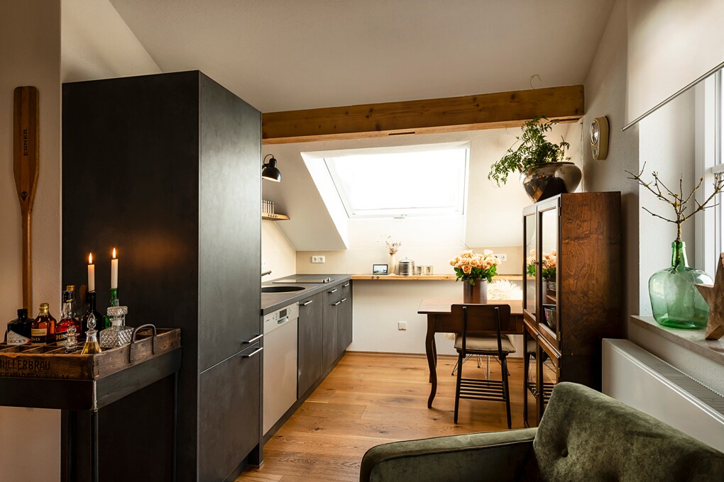 El departamento se renueva regularmente. Los muebles de roble y materiales naturales para una buena conciencia y la alegría de la comodidad te dan el marco para una estancia relajante. Tienes tu propia entrada y puedes desayunar o asar en tu propia terraza cuando el clima lo permita. Por supuesto, tenemos una cocina totalmente equipada con microondas y cafetera Nespresso. La televisión es obligatoria y para las personas analógicas entre ustedes, una biblioteca está a su disposición.