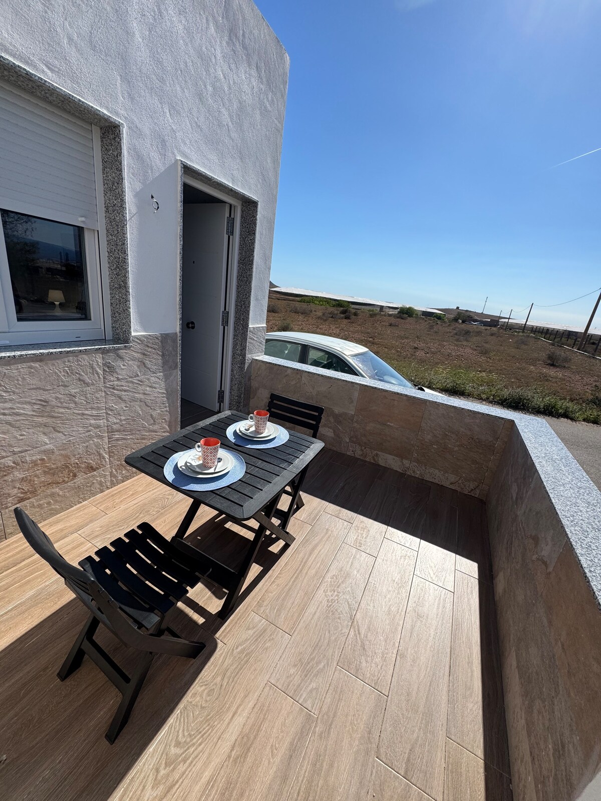 Casa con terraza, luminosa y fresca, en una zona tranquila en El Pozo de los Frailes, en pleno corazón del Parque Natural de Cabo de Gata-Níjar. A pocos minutos de San José y de las playas más espectaculares de esta reserva de la biosfera. Cuenta con una espaciosa habitación, un área diáfana con cocina/comedor/salón y una terraza con toldo extensible para disfrutar del clima paradisíaco durante todo el año. El apartamento no cuenta con aire acondicionado (sí con ventiladores de techo y suelo).