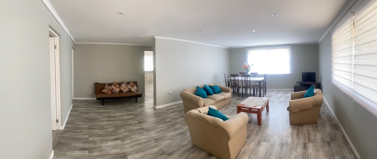 Diviértete con toda la familia en este alojamiento con estilo. Disfruta de un momento de total relajo, descanso y desconexión junto a tu familia. Nuestro espacio cuenta con: WiFi, Platos, Vasos y Utensilios de cocina. Refrigerador, Cocina, Hervidor, Horno. y una Parrilera para disfrutar en familia. Amplia zona de patio con Tinaja ideal para compartir. Excelente ubicación Centros Comerciales, Supermercados, Bancos, Restaurantes, Estación de servicio, Parques, Complejos Deportivos, Viñedos.