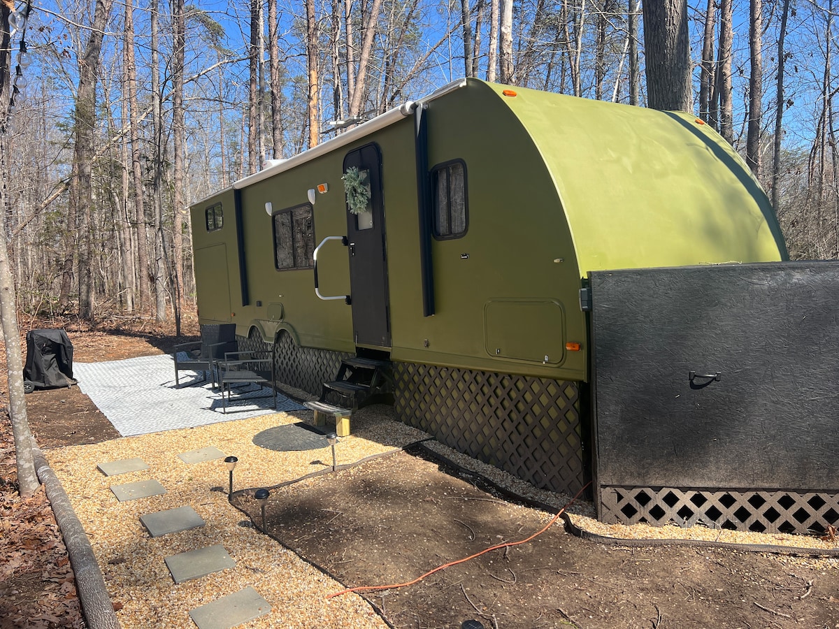 A las afueras del bullicio de D.C., un escondite ofrece un refugio tranquilo y romántico en el corazón de Lanham. Rodeada por la belleza natural del condado de Prince George, esta acogedora casa rodante cuenta con un gran sofá cama completo, una cama completa, iluminación suave y ventanas para disfrutar de las vistas doradas del atardecer. Disfruta de comidas íntimas en la encantadora cocina pequeña y luego relájate en tu espacio al aire libre. Ya sea que estés observando las estrellas o explorando el cercano lago Artemisia, este es el lugar perfecto para relajarte y crear recuerdos duraderos.