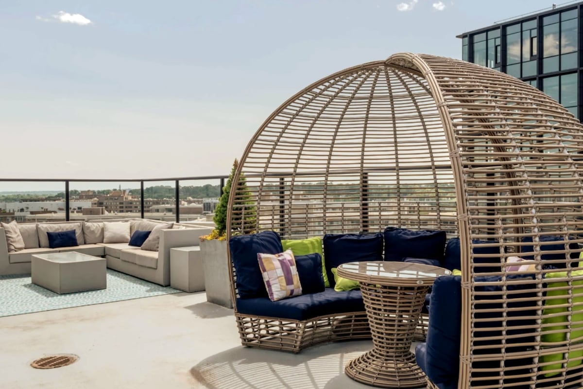 Alójate en un departamento de lujo en uno de los vecindarios más transitables de DC, entre el West End y Georgetown en Pennsylvania Ave. Camina hasta el National Mall, los museos Smithsonian, el histórico Georgetown, los mejores restaurantes y la vida nocturna. Renovado en 2016, este elegante espacio ofrece comodidades modernas, además de acceso gratuito a Balance Gym Foggy Bottom y Capitol Hill. Disfruta de vistas frente al mar, parques pintorescos y la vibrante cultura de DC, ¡todo a pocos minutos!