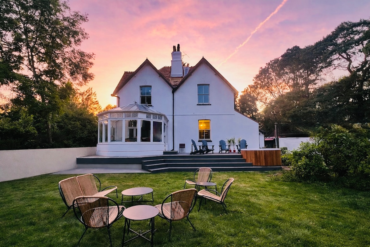 Una casa de campo independiente situada en una posición tranquila rodeada de bosques a 4 millas del centro de la ciudad de Guildford y reformada con un alto nivel con cocina totalmente equipada y un lavadero con lavadora, secadora y aseo en la planta baja. Hay cuatro dormitorios, uno con baño privado y un baño familiar. Estacionamiento para 3 coches. Amplio jardín con patio y asientos y una gran cama elástica con red para su uso bajo su propia responsabilidad. En nuestro hogar todas las personas son bienvenidas, vengan de donde vengan.