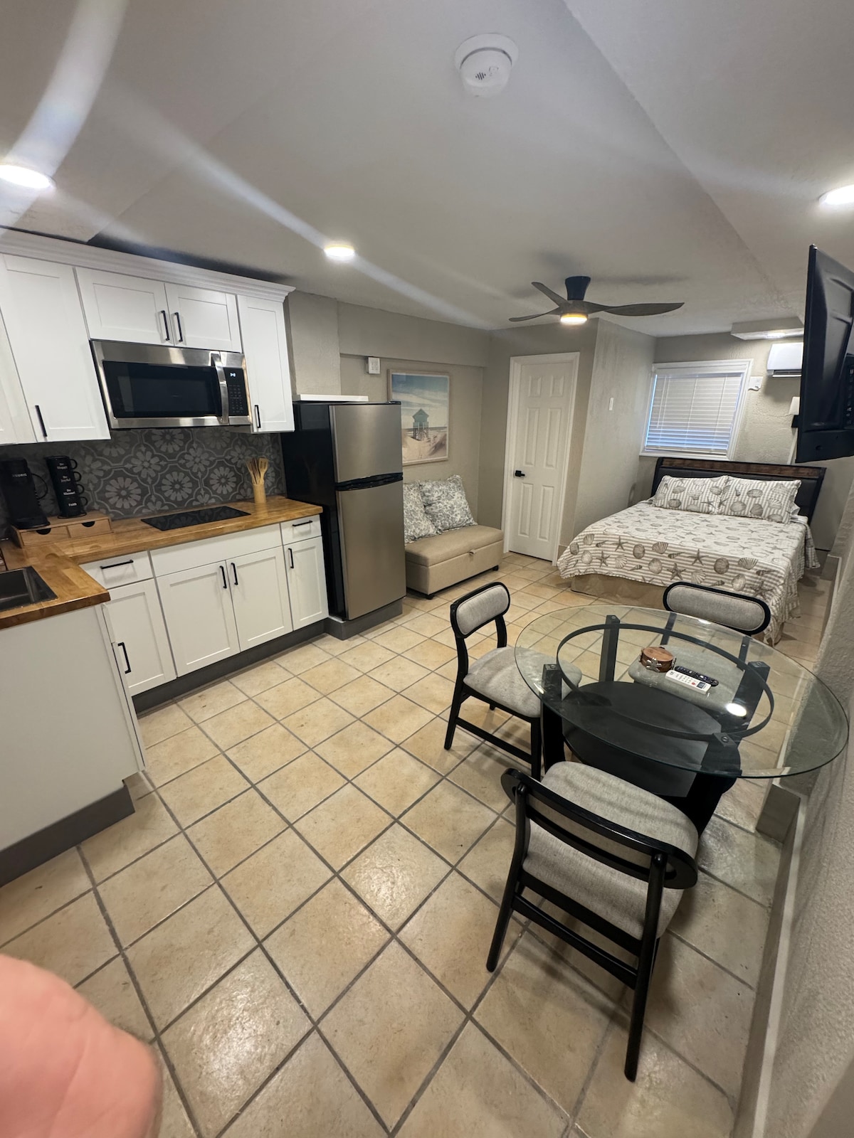 Luminoso, elegante y pintoresco. Recién remodelado y amueblado para que te sientas como en tu propia casa de playa. Coge la silla de playa y la toalla que te proporcionamos para tu corto paseo hasta la playa (a un campo de fútbol de distancia) y respira profundamente; deja que las interminables vistas, las olas rompiendo y la arena entre los dedos de los pies te lleven lejos. La cocina bien equipada se puede utilizar simplemente para hacer café o una cena completa. ¿No te apetece cocinar? ¡No hay problema! ¡Indian Rocks Beach ofrece lugares locales para desayunar, almorzar y cenar!