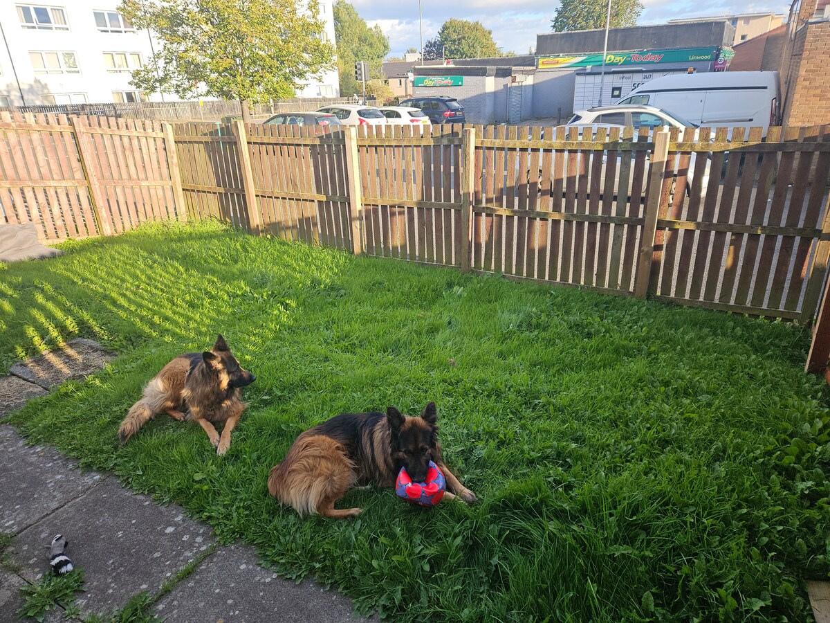 Modern ground floor flat with 2 double rooms and can comfortably accommodate 4 adults. This apartment has quick links to Glasgow airport (bus & taxi) and has free on street parking for short/ medium stays. Avoid those crazy airport parking prices. Flat is also within walking distance to Braehead / XScape/ Normandy Hotel as well as shops & supermarkets. There is express bus links from Renfrew into Glasgow city centre and is close to Inchinnan Business Park. Pets are also welcome here 🐶