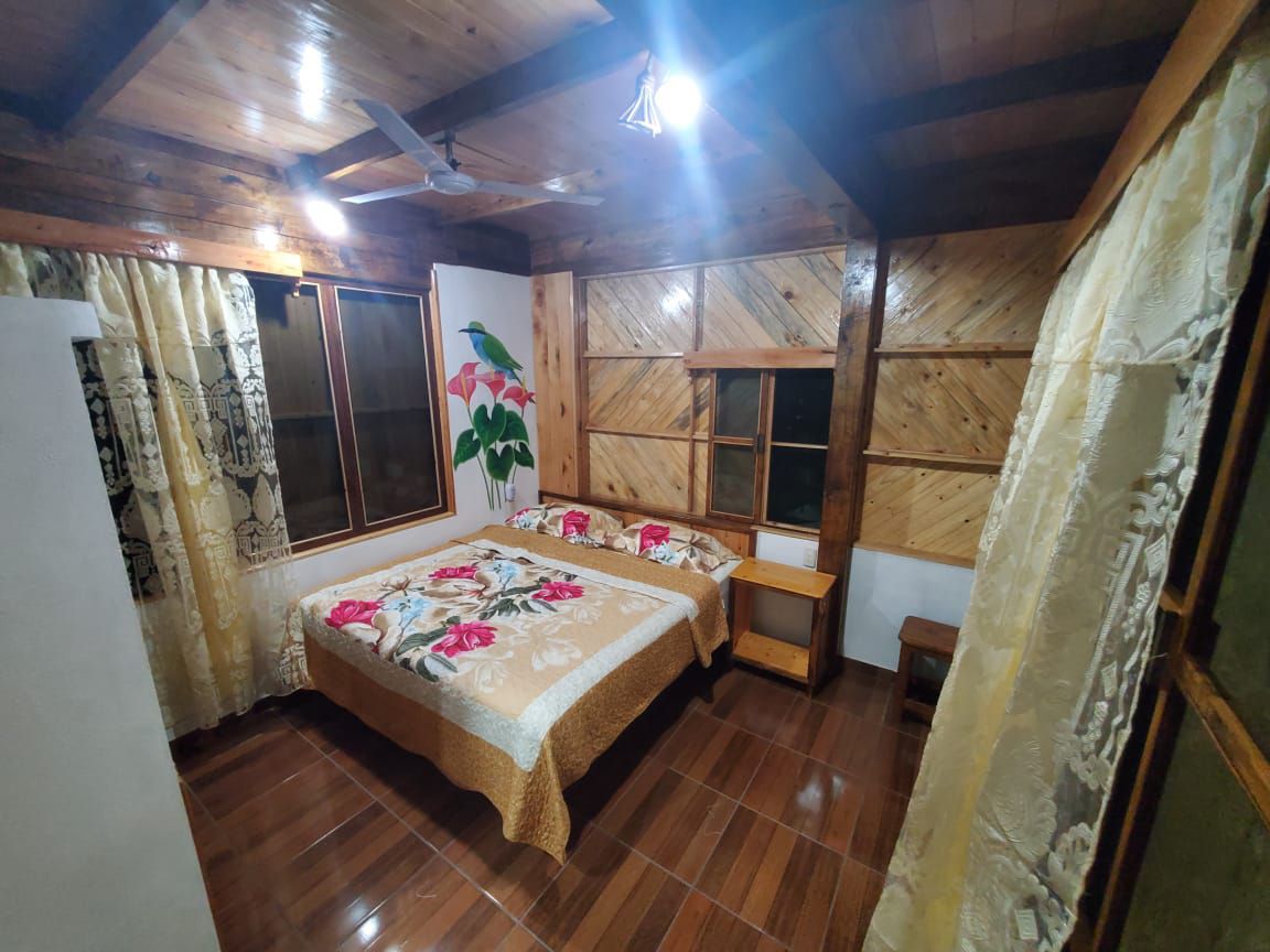 Hermosa cabaña, excelente ubicación. Bonita terraza para contemplar la naturaleza del lugar y ocasionalmente apreciar el recorrido de luciérnagas, lluvia de estrellas y salidas de la luna. Cuenta con una amplia área para la práctica de senderismo de los cuales puedes llegar hasta la zona arqueológica de ranas, campo alegre, cabecera municipal, mirador la crucita y mirador de san Antonio. Es una cabaña muy acogedora ideal para descansar y estar en contacto con la naturaleza.