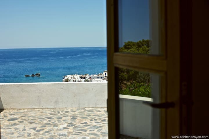 Oleander room with sea view at 200 yrs rural house