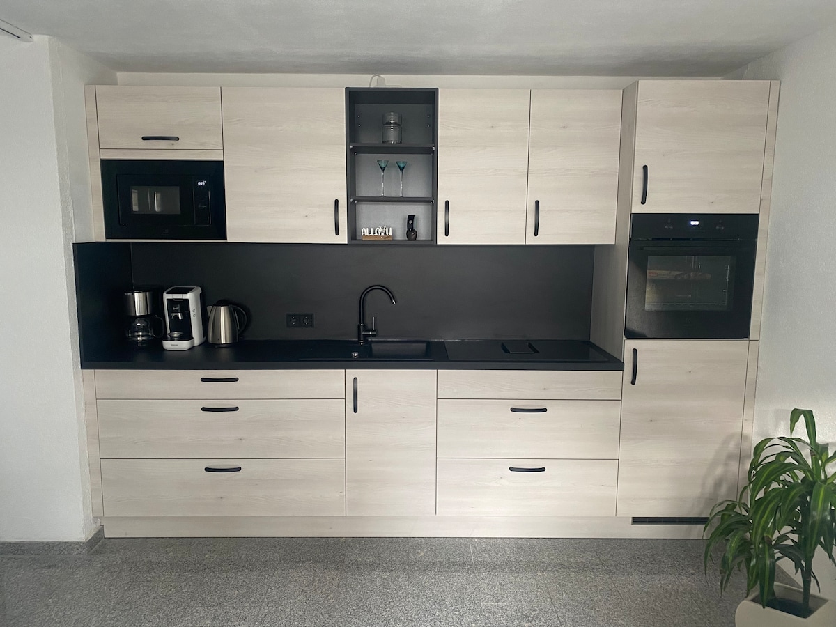 El apartamento, amueblado con cariño e inundado de luz, con su propia entrada desde el jardín, está en una casa de asentamiento en el Halblech. Tiene 43 metros cuadrados, la sala de estar y el área para dormir no están separados por una puerta. El apartamento es adecuado para parejas o familias con hasta dos hijos. Una cama doble, 180 x 200, y un sofá cama 140 x 195 ofrecen mucho espacio. La pequeña cocina está equipada con una placa de inducción, nevera y fregadero.