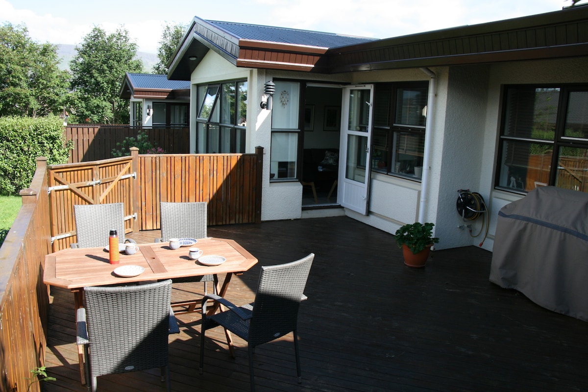 Una hermosa y luminosa casa de diseñadores apta para familias y amigos con jardín privado y bañera de hidromasaje. La casa se encuentra en tres plantas con 2 dormitorios y una habitación para niños. Hay un colchón tamaño queen adicional en el dormitorio libre en el sótano. Esta es una zona residencial tranquila de la ciudad con proximidad a actividades al aire libre muy agradables y cerca del centro de la ciudad en transporte público o coche. Perfecto para relajarse y ser una base para explorar Islandia.