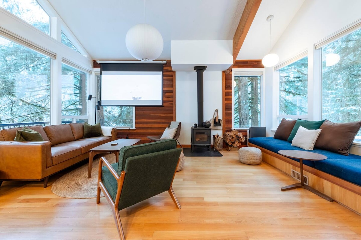 Bienvenido a Rhodi House, una cabaña tranquila y de diseño avanzado escondida cerca del monte. Bosque Nacional Hood. A 15 minutos de Government Camp y a poca distancia del río Sandy, este refugio renovado de la década de 1970 ofrece dos dormitorios tamaño king, un acogedor loft abierto con una cama doble oculta, una terraza envolvente y una bañera de hidromasaje privada ubicada entre los árboles. Con un estilo moderno, una cocina surtida y sábanas suaves, es la escapada perfecta durante todo el año para parejas, amigos o familias.