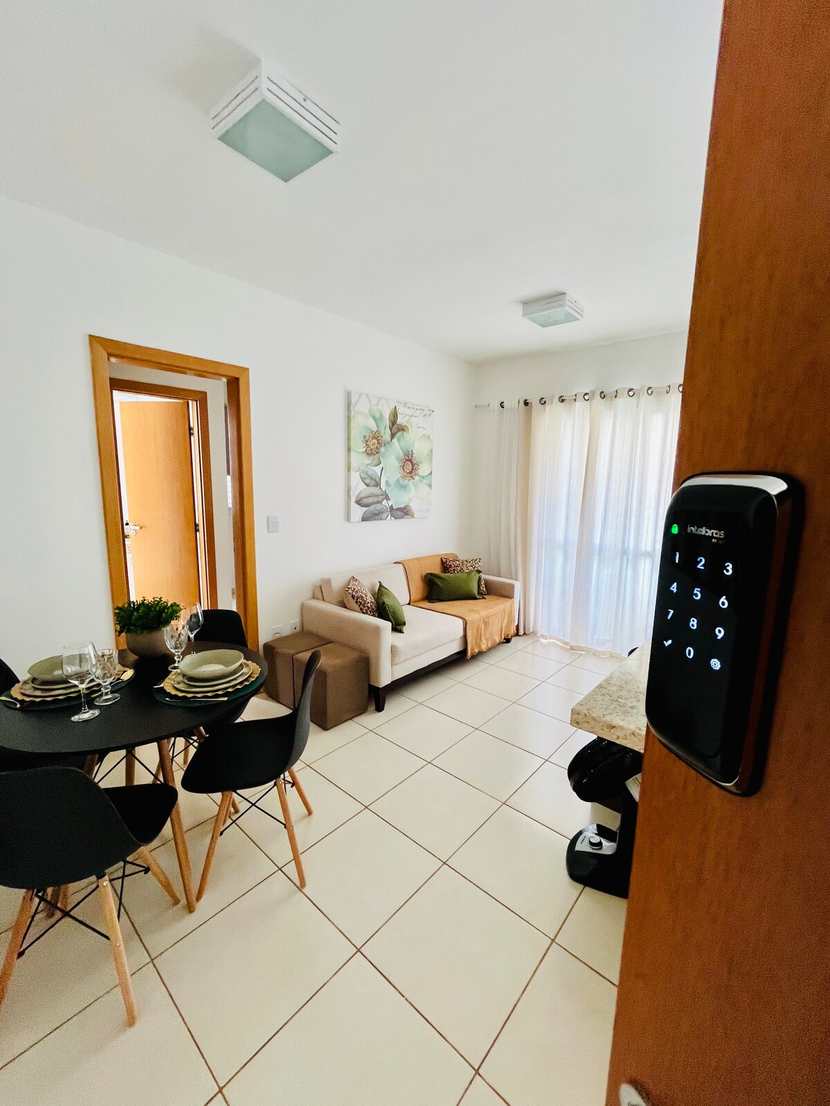 Si buscas un lugar funcional y acogedor, ¡este apartamento te sorprenderá! ¡Excelente velocidad Wi-Fi, aire acondicionado en los dormitorios y sala de estar! Dos dormitorios, uno con una cama tamaño queen, el otro con 2 camas individuales, una mesita de noche móvil (que permite retirarla si es necesario unir las dos camas) y armarios planificados. Villa con sillas cómodas, cafetera, cocina con todos los utensilios necesarios para preparar tus comidas. Lavadora y tanque. ¡Relájate y siéntete en casa!