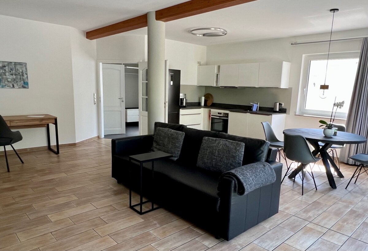 La sauna, la estufa de leña, la terraza en la azotea con vistas al agua, los espaciosos 120 metros cuadrados o la máquina de café espresso, cada huésped nombra un punto destacado diferente de nuestro piso superior en el centro de la ciudad de Ribnitz-Damgarten. Disfrute de la proximidad a la playa del mar Báltico, la ubicación central en el centro de la ciudad con restaurantes y el maravilloso mercado semanal con especialidades locales.